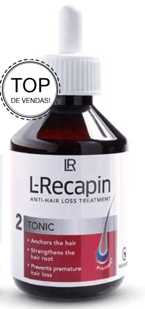O tonico L-Recapin atua contra a queda do cabelo hereditaria. Aplicar o tonico apos a lavagem, sobre o cabelo humido, com precisao. Massajar com movimentos circulares.